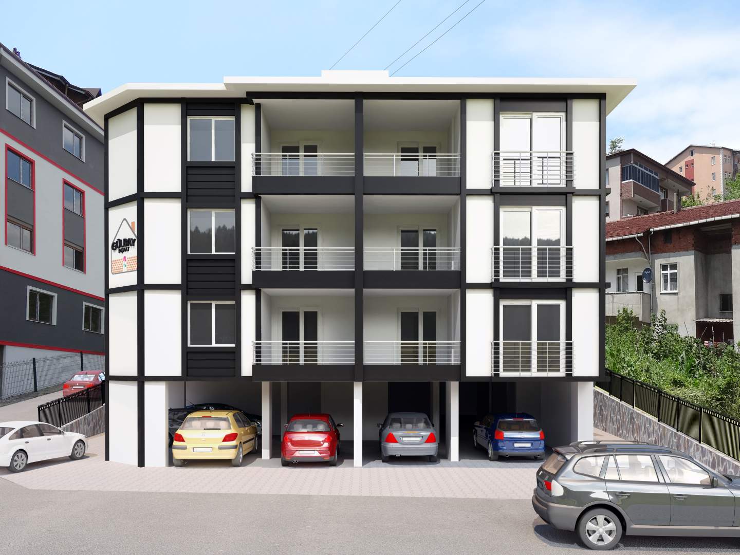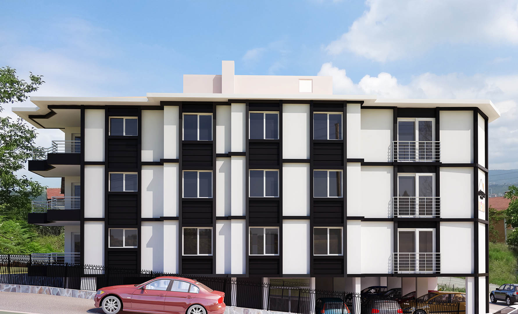 - Çift daireden, 4 katlı bina 9 daire.